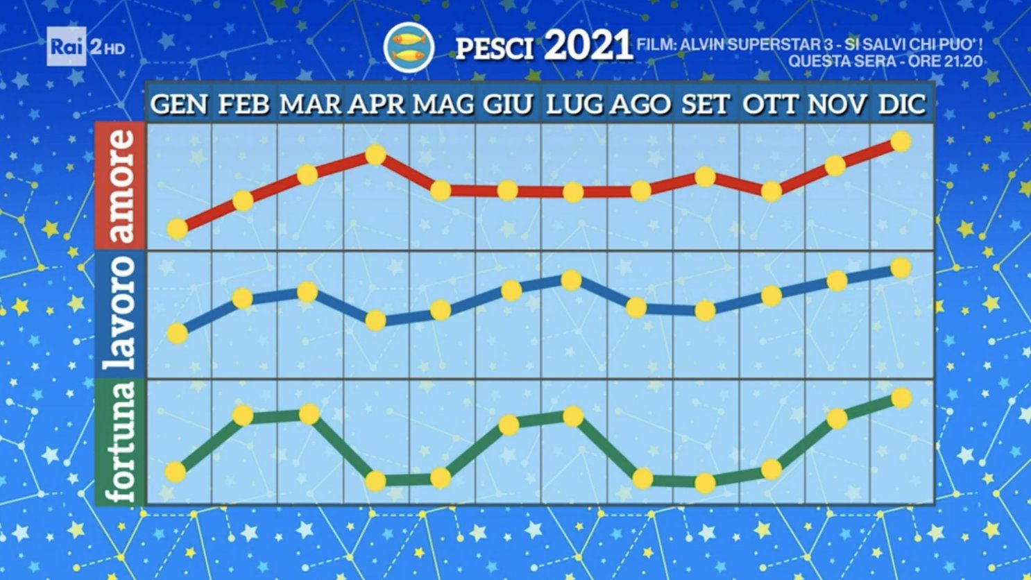 L’Oroscopo 2021 di Paolo Fox con le previsioni del noto astrologo raccontate attraverso i grafici segno per segno su amore, fortuna e lavoro per i prossimi 12 mesi. Il riassunto in immagini del 2021 per Ariete, Toro, Gemelli, Cancro, Leone, Vergine, Bilancia, Scorpione, Sagittario, Capricorno, Acquario e Pesci, e la classifica generale con i segni più fortunati dell’anno.