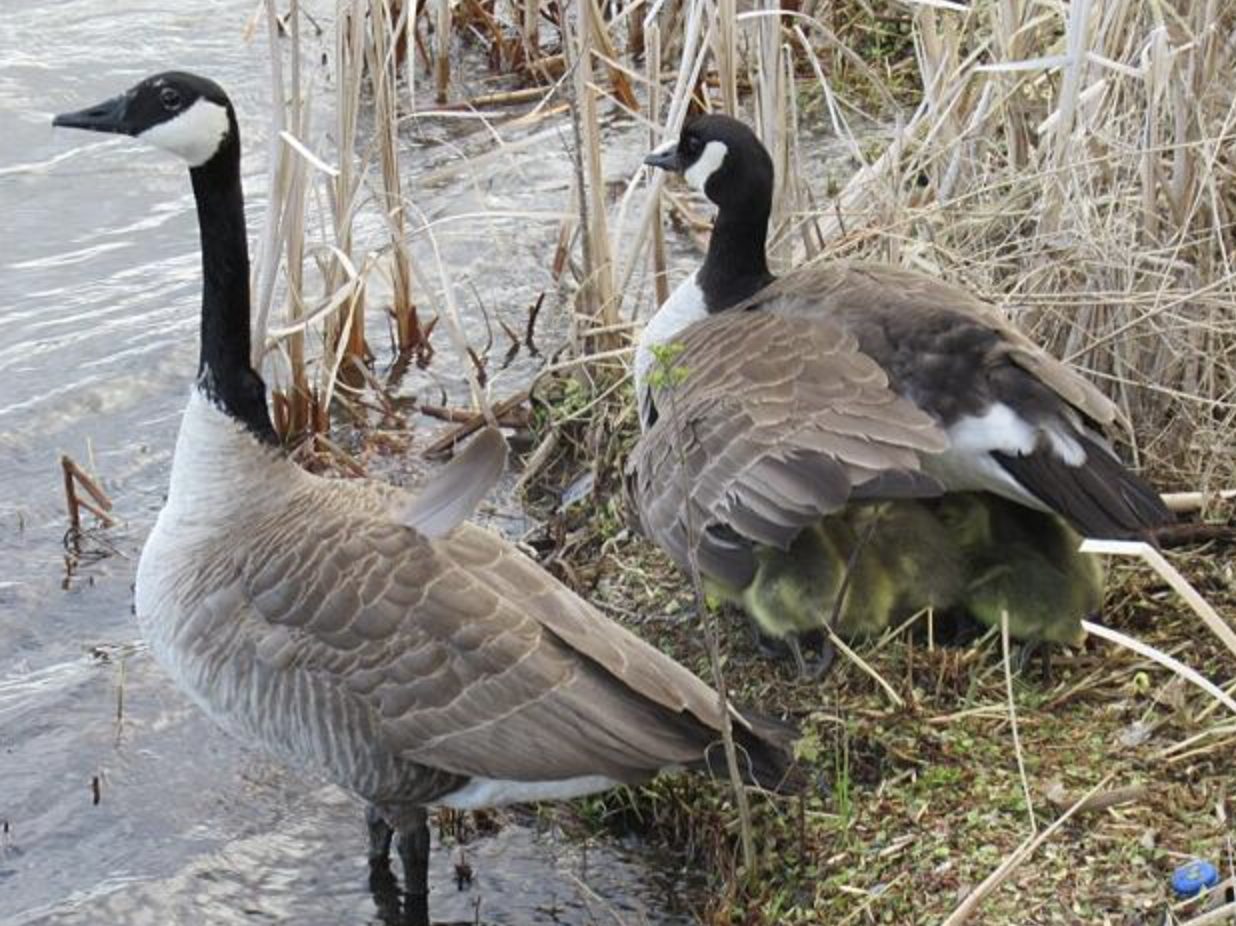 I pulcini sono in difficoltà: mamma oca li guida nel fiume