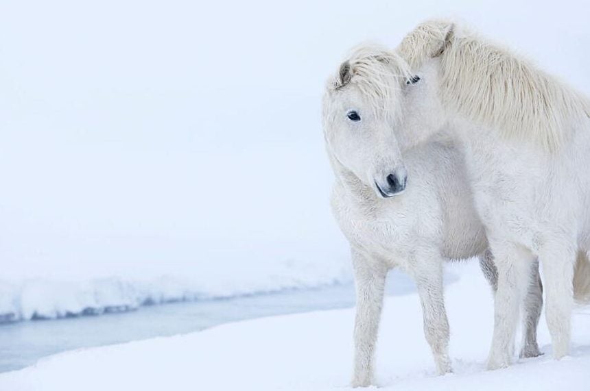 Gli scatti del fotografo mostrano lo spettacolo di cavalli liberi tra paesaggi innevati