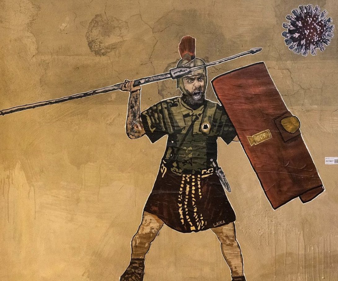 L'ex centrocampista e bandiera della Roma, che nei giorni scorsi era stato ricoverato allo Spallanzani dopo la positività al coronavirus e per una polmonite, ha ricevuto la vicinanza del mondo dello sport e non solo. In questo caso l'artista Laika gli ha dedicato un murale che lo ritrae nei panni di un centurione romano che combatte contro il coronavirus, vestito con elmo e scudo, oltre che con la lancia.