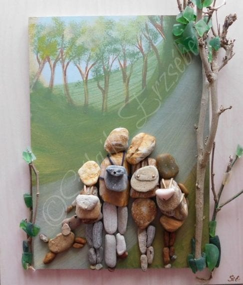 Szilajka Erzsébet, artista ungherese che combina le pietre per creare opere d'arte. La tecnica è l'arte del ciottolo