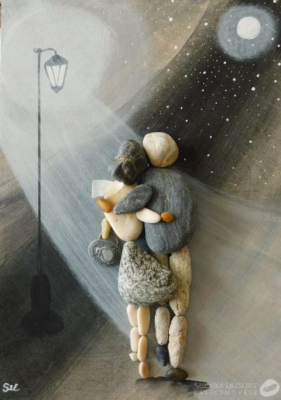 Szilajka Erzsébet, artista ungherese che combina le pietre per creare opere d'arte. La tecnica è l'arte del ciottolo