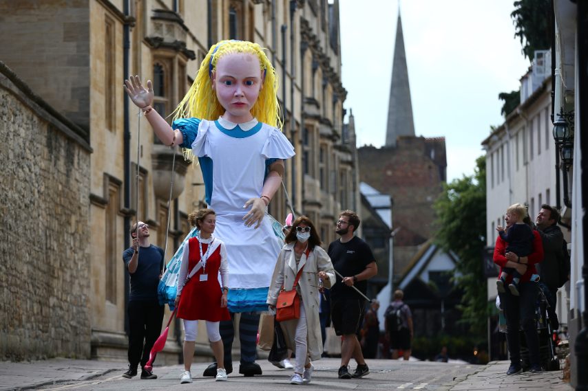 Per le strade di Oxford si festeggia il 150esimo anniversario di "Attraverso lo specchio e quel che Alice vi trovò", sequel dell'opera principale di Lewis Carroll.