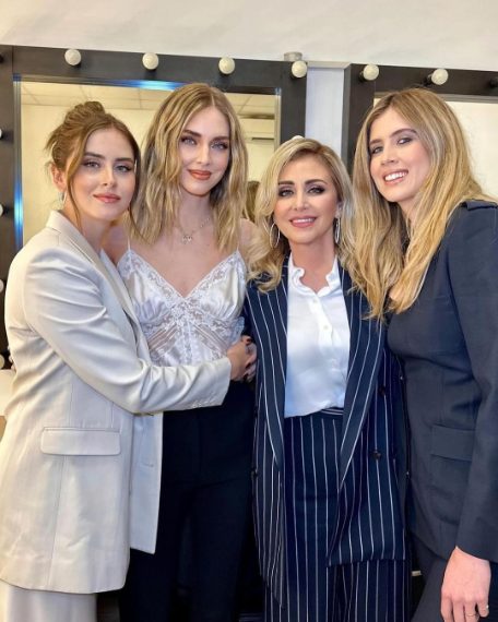 Nello studio di Che tempo che fa, in occasione dell'intervista a Chiara Ferragni, la famiglia dell'imprenditrice: la madre Marina Di Guardo e le sorelle Francesca e Valentina.