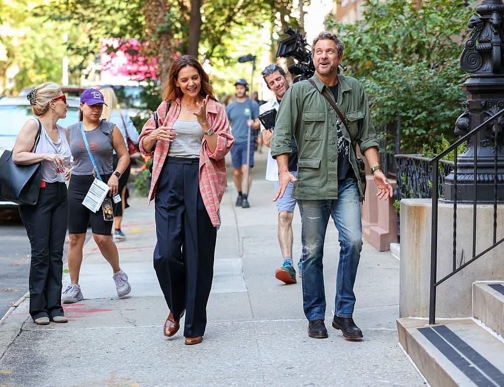 Katie Holmes e Joshua Jackson sul set del film "Happy Hour" il 22 luglio 2025 a New York City. Joey e Pacey tornano insieme, per lavoro, 20 anni dopo Dawson's Creek.