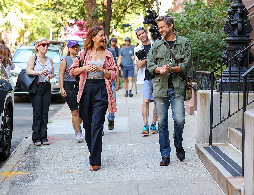 Katie Holmes e Joshua Jackson sul set del film "Happy Hour" il 22 luglio 2025 a New York City. Joey e Pacey tornano insieme, per lavoro, 20 anni dopo Dawson's Creek.
