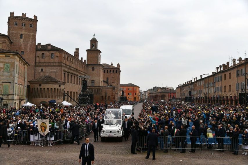Bergoglio in via in Emilia Romagna nelle zone colpite dal terremoto del 2012. Prima messa a Carpi, poi nel pomeriggio a Mirandola.