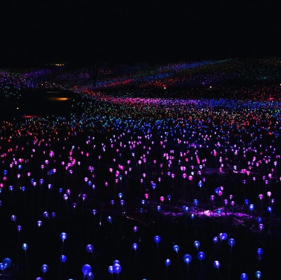 Field of Light a Sensorio, a Paso Robles, California, è l’installazione artistica illuminata più grande di sempre, che porta la firma di Bruce Munro, noto artista britannico. Come cornice per l’installazione sono stati scelti i Sensorio Gardens, meta multidisciplinare in cui arte, tecnologia e natura si intersecano. Estendendosi per 15 acri nei Sensorio Gardens, l’installazione si compone di oltre 58.800 sfere dotate di stelo e illuminate da fibre ottiche, che rischiarano soffusamente il paesaggio come sottili boccioli dai colori cangianti.