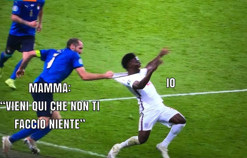 Chiellini che afferra Saka per la maglia: il fallo di Euro 2020 diventato un meme