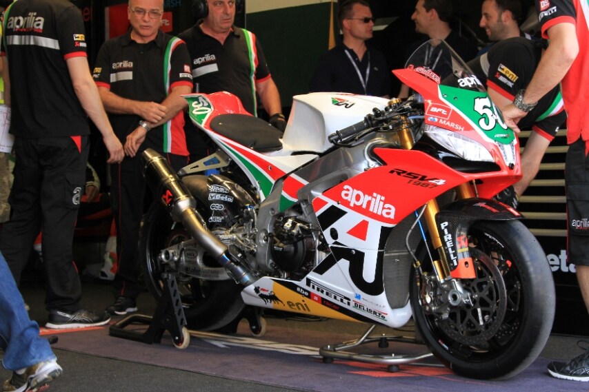Le Aprilia RSV4 Factory scendono in pista al Misano World Circuit Marco Simoncelli con i colori replica 1987, anno in cui Loris Reggiani, proprio a Misano, portò per la prima volta sul gradino più alto del podio la moto della casa di Noale. Un omaggio a quella vittoria, ma anche un modo per ricordare i cinquantadue mondiali vinti negli ultimi 22 anni, tra Motomondiale, Superbike e nel fuoristrada. Marco Melandri e Sylvain Guintoli oltre alla moto dalla colorazione replica, useranno anche le nuove tute disegnate per l'occasione. Il ravennate inoltre sfoggia un casco tutto speciale dedicato ai mondiali di calcio in Brasile.