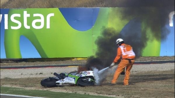 Sfortunatissimo Hector Barbera nel primo turno di libere del GP di Aragon: la sua nuova Ducati prende improvvisamente fuoco. Lo spagnolo riesce a lanciarla nella ghiaia prima che accada il peggio. Per lui nessuna grave conseguenza ma una leggera ustione al braccio: “Credo che sia uscita della benzina e la moto ha preso fuoco. Mi sono bruciato il braccio” ha spiegato al rientro ai box.