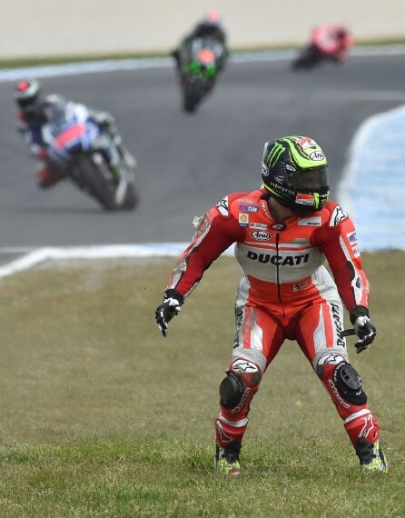 Il britannico della Ducati è caduto all’ultimo giro del GP d’Australia quando, dopo aver sorpassato Jorge Lorenzo, si trovava in seconda posizione alle spalle di Valentino Rossi. Il pilota di Coventry ha visto così sfumare il podio: “Non ci meritavamo un esito del genere. La prima volta che ho rallentato il mio ritmo nel corso in gara è stato proprio nell’ultimo giro e ovviamente la gomma anteriore si è subito raffreddata. Avevo scelto quella asimmetrica e il rischio era appunto quello” ha spiegato Cal Crutchlow. “È stato un peccato, perché l’unico errore che ho fatto in tutta la gara è stato quello di rallentare un po’ e non continuare a spingere forte. È una grossa delusione per me e per i ragazzi del mio team che si meritavano di più”.