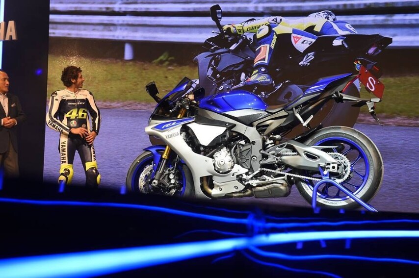 Il pluricampione pesarese presenta la nuova Yamaha R1, la supersportiva della Casa dei tre diapason: motore quadricilindrico da 200cv con airbox non in pressione per soli 199 kg di peso in assetto di marcia. Con Valentino Rossi anche Jorge Lorenzo che presenta la versione da gara R1M.
