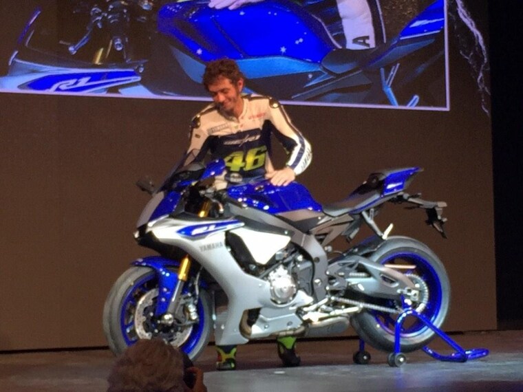 Il pluricampione pesarese presenta la nuova Yamaha R1, la supersportiva della Casa dei tre diapason: motore quadricilindrico da 200cv con airbox non in pressione per soli 199 kg di peso in assetto di marcia. Con Valentino Rossi anche Jorge Lorenzo che presenta la versione da gara R1M.