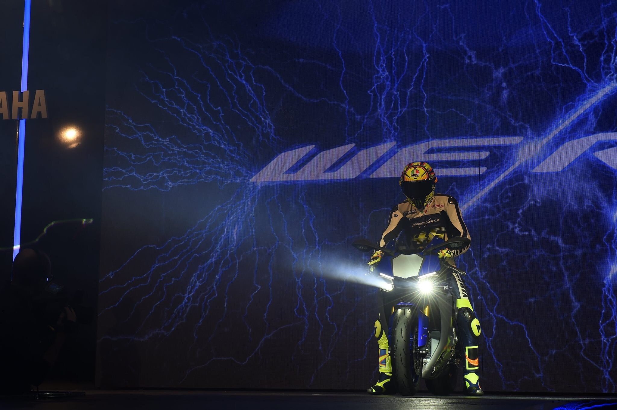 Il pluricampione pesarese presenta la nuova Yamaha R1, la supersportiva della Casa dei tre diapason: motore quadricilindrico da 200cv con airbox non in pressione per soli 199 kg di peso in assetto di marcia. Con Valentino Rossi anche Jorge Lorenzo che presenta la versione da gara R1M.