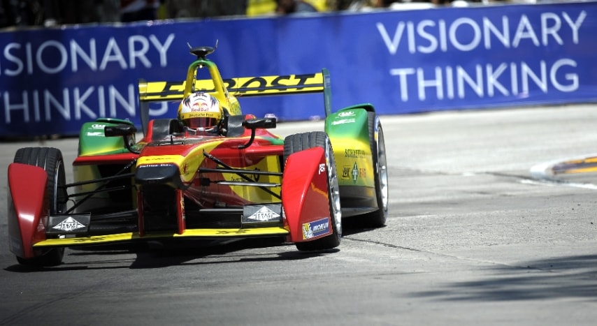 Colpi di scena e prima vittoria stagionale del portoghese davanti a Nicolas Prost e Nelson Piquet. A muro Buemi e Di Grassi. Vergne sesto.