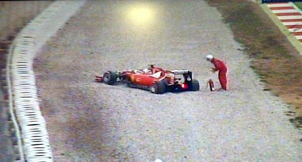 Test Barcellona, Vettel fuori pista dopo pochi giri