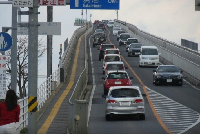 Un'altezza di 11,4 metri. Questa è una delle specificità dell'Eshima Ohashi, ponte che collega le città di Matsue e Sakaiminato. Questa costruzione si presenta con una pendenza a dir poco straordinaria perchè al di sotto passano le imbarcazioni che navigano il lago Nakaumi. Come fare un giro sulle montagne russe.
