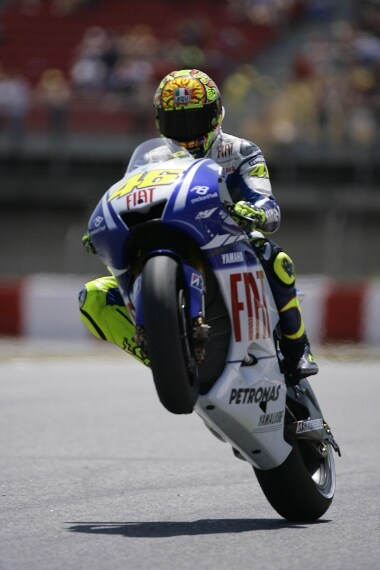 Il pesarese infila Jorge Lorenzo all'ultima curva del circuito del Montmelò dopo due giri al cardiopalma. Casey Stoner completa il podio.