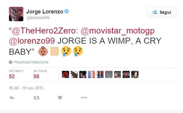 Jorge Lorenzo litiga con i tifosi su Twitter