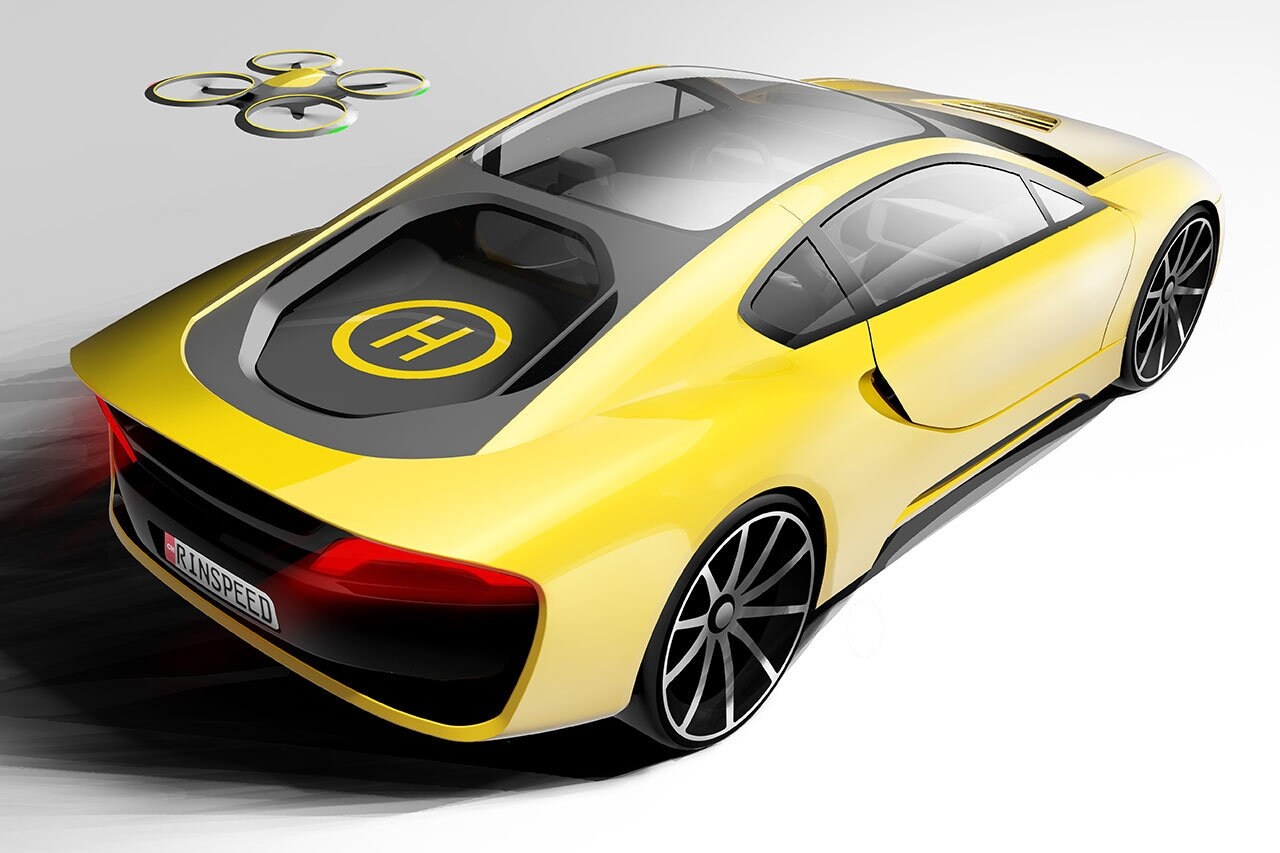 La Bmw i8 ottiene la guida autonoma. Il preparatore svizzero Rinspeed presenta ufficialmente la Etos. La vettura integra un pannello in vetro al retrotreno da cui decolla un drone.