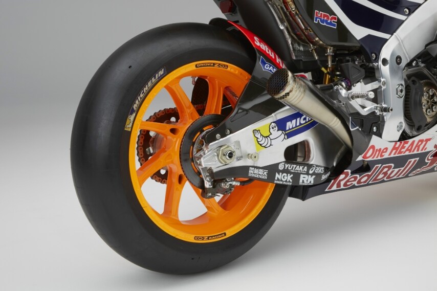Sostanziali modifiche al telaio per la versione 2016 del prototipo che sarà affidato ai piloti Marc Marquez e Dani Pedrosa nella prossima stagione MotoGP. Progettato per fornire la necessaria resistenza e flessibilità per scaricare gli oltre 180 Kw sullo pneumatico posteriore, il telaio in alluminio twin-tube è stato modificato nel bilanciamento della rigidità per garantire stabilita di guida. Per quanto riguarda il propulsore, la nuova RC213V adotta un motore 4 cilindri a "V" da 1.000cc rivisto nei dettagli per renderlo ancora più leggero e potente. Sospensioni Ohlins sia all’anteriore che al posteriore, impianto frenante dell’italiana Brembo. La carrozzeria in fibra di carbonio massimizza l’aerodinamica della moto, modificata per raggiungere la massima compatibilità tra maneggevolezza e resistenza.