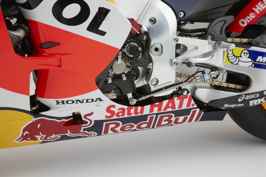Sostanziali modifiche al telaio per la versione 2016 del prototipo che sarà affidato ai piloti Marc Marquez e Dani Pedrosa nella prossima stagione MotoGP. Progettato per fornire la necessaria resistenza e flessibilità per scaricare gli oltre 180 Kw sullo pneumatico posteriore, il telaio in alluminio twin-tube è stato modificato nel bilanciamento della rigidità per garantire stabilita di guida. Per quanto riguarda il propulsore, la nuova RC213V adotta un motore 4 cilindri a "V" da 1.000cc rivisto nei dettagli per renderlo ancora più leggero e potente. Sospensioni Ohlins sia all’anteriore che al posteriore, impianto frenante dell’italiana Brembo. La carrozzeria in fibra di carbonio massimizza l’aerodinamica della moto, modificata per raggiungere la massima compatibilità tra maneggevolezza e resistenza.