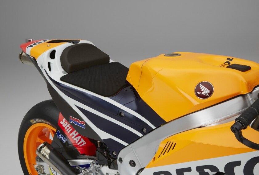 Sostanziali modifiche al telaio per la versione 2016 del prototipo che sarà affidato ai piloti Marc Marquez e Dani Pedrosa nella prossima stagione MotoGP. Progettato per fornire la necessaria resistenza e flessibilità per scaricare gli oltre 180 Kw sullo pneumatico posteriore, il telaio in alluminio twin-tube è stato modificato nel bilanciamento della rigidità per garantire stabilita di guida. Per quanto riguarda il propulsore, la nuova RC213V adotta un motore 4 cilindri a "V" da 1.000cc rivisto nei dettagli per renderlo ancora più leggero e potente. Sospensioni Ohlins sia all’anteriore che al posteriore, impianto frenante dell’italiana Brembo. La carrozzeria in fibra di carbonio massimizza l’aerodinamica della moto, modificata per raggiungere la massima compatibilità tra maneggevolezza e resistenza.
