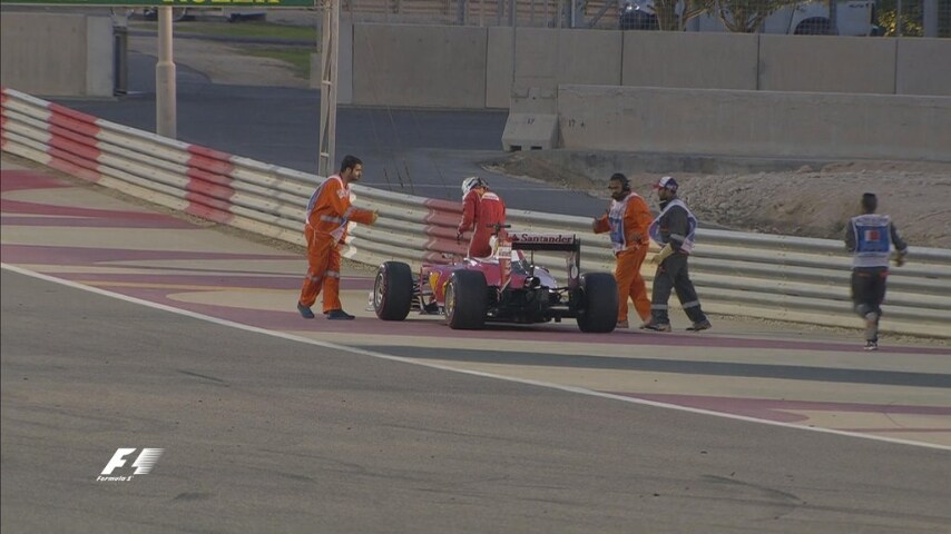 Un problema al propulsore della SF16-H costringe Vettel a parcheggiare la monoposto a bordo pista. Aiutati dagli stewart a metterla in sicurezza / @F1