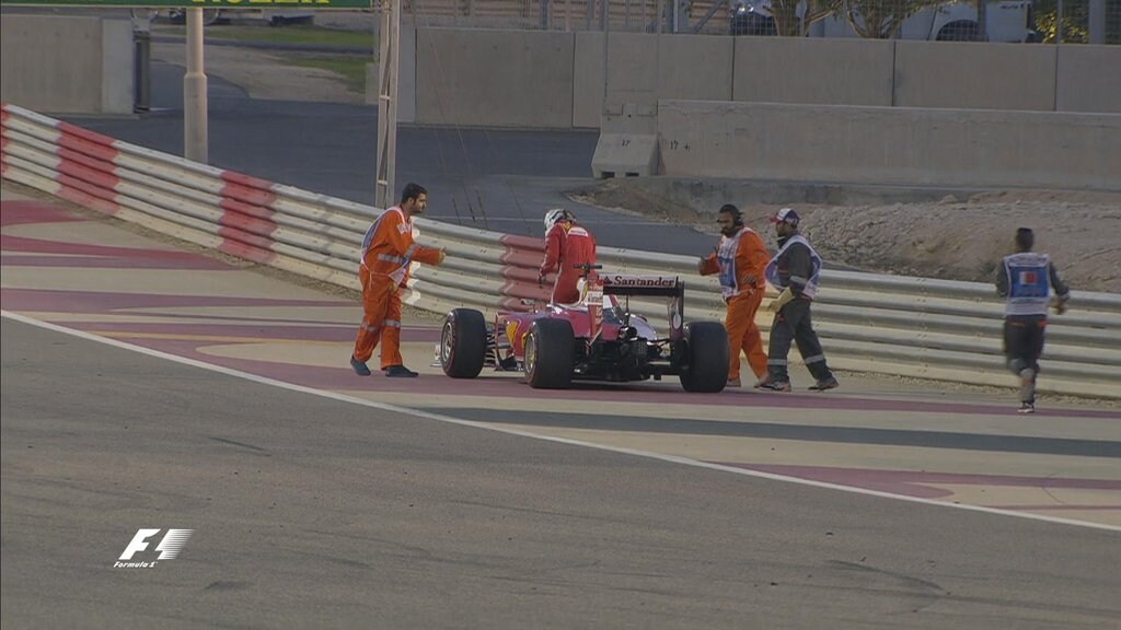 Un problema al propulsore della SF16-H costringe Vettel a parcheggiare la monoposto a bordo pista. Aiutati dagli stewart a metterla in sicurezza / @F1