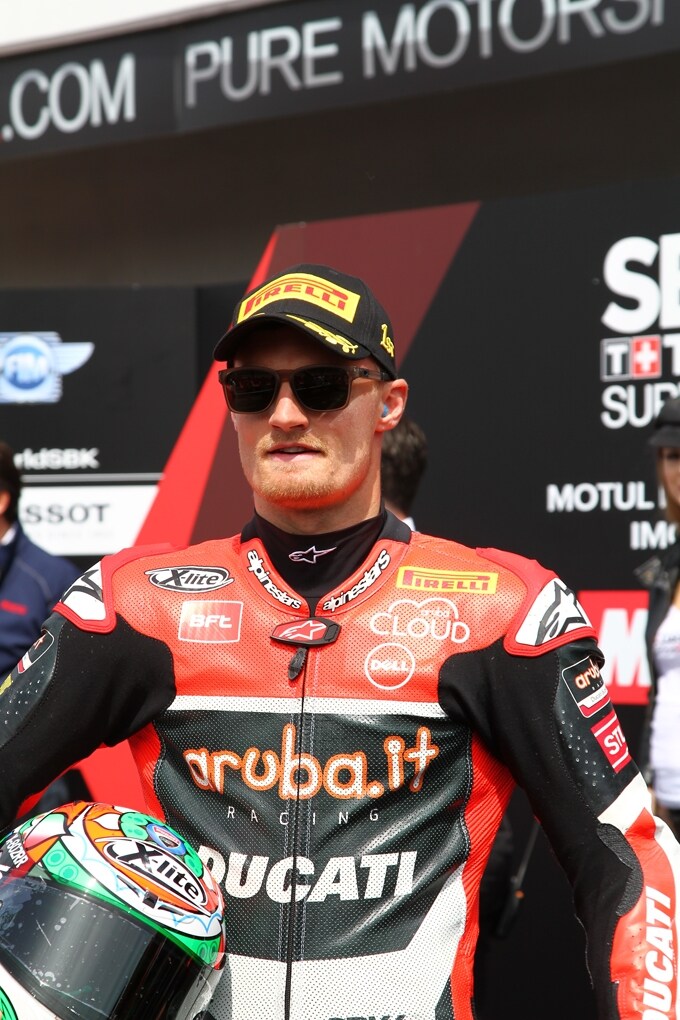 Sulle curve dell'Autodromo Internazionale Enzo e Dino Ferrari di Imola è festa Ducati anche in Superpole. Chaz Davies conquista la prima casella in griglia, dopo aver dominato tutte e tre le sessioni di prove libere. Alle spalle del gallese, che ha firmato il best lap in 1'45.598, l'altra Panigale ufficiale di Davide Giugliano (+0.457) e la Kawasaki di Jonathan Rea (+0.730).