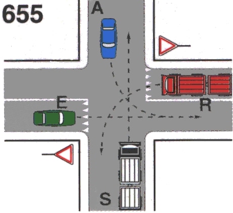 Il veicolo S transita prima di tutti gli altri veicoli
