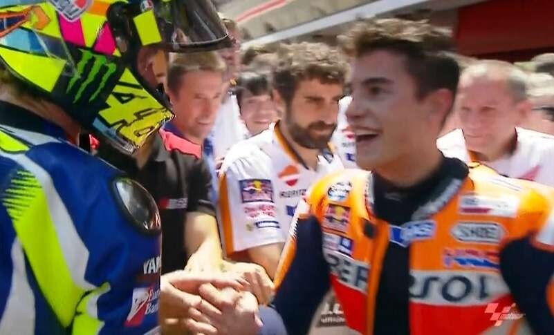 MotoGp, Valentino Rossi e Marc Marquez si stringono la mano a fine gara