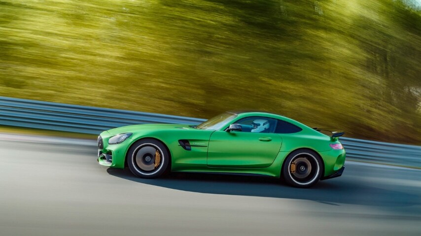 Mercedes libera il mostro. La nuova AMG GT R mette a disposizione ben 585 CV erogati dal V8 biturbo realizzato ad Affalterbach. L'eccellente pacchetto aerodinamico garantisce ottima stabilità in curva.