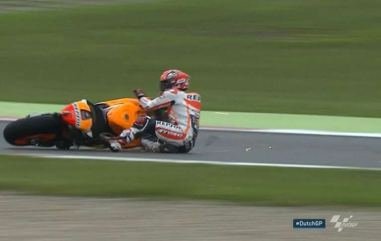 MotoGp Assen, Marquez cade in qualifica: ruba uno scooter e torna al box. Poi in pista per la seconda fila