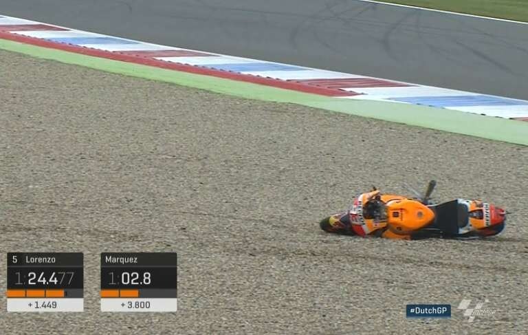 Lo spagnolo perde il controllo della sua Honda nel giro di lancio e finisce lungo la via di fuga. Con grande reattività si rialza, prende uno scooter a un fotografo italiano (Tino Martino) e transitando per il paddock torna al box per poi rientrare in pista con la seconda moto e trovare un insperato quarto tempo che gli permette di scattare dalla seconda fila del GP d'Olanda.