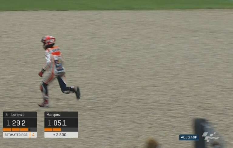 Lo spagnolo perde il controllo della sua Honda nel giro di lancio e finisce lungo la via di fuga. Con grande reattività si rialza, prende uno scooter a un fotografo italiano (Tino Martino) e transitando per il paddock torna al box per poi rientrare in pista con la seconda moto e trovare un insperato quarto tempo che gli permette di scattare dalla seconda fila del GP d'Olanda.