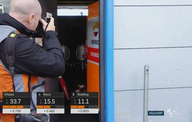 Lo spagnolo perde il controllo della sua Honda nel giro di lancio e finisce lungo la via di fuga. Con grande reattività si rialza, prende uno scooter a un fotografo italiano (Tino Martino) e transitando per il paddock torna al box per poi rientrare in pista con la seconda moto e trovare un insperato quarto tempo che gli permette di scattare dalla seconda fila del GP d'Olanda.