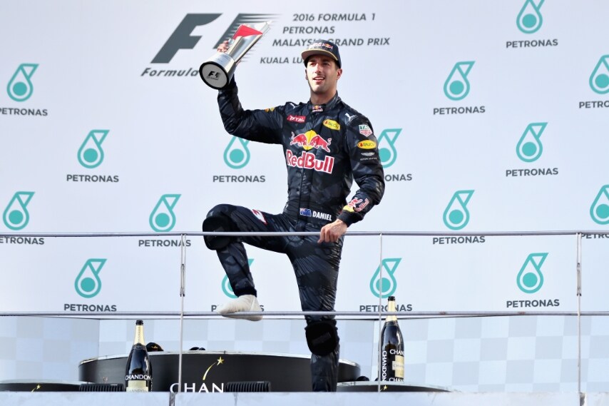 F1 Gp Malesia: Ricciardo festeggia sul podio con lo shoey