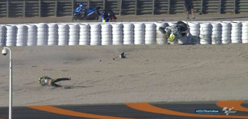 Andrea Iannone perde il controllo della Suzuki nel corso del giro di uscita dal box a poco più di un'ora dal termine della prima giornata di test. L'abruzzese è caduto in curva 10, mentre la GSX-RR è finita per rotolare nella ghiaia della via di fuga fino a impattare contro le barriere. Iannone si è rapidamente rialzato per tornare al box con uno scooter ma è apparso zoppicante. Secondo i primi riscontri medici non dovrebbero esserci particolari conseguenze (MotoGp.com)