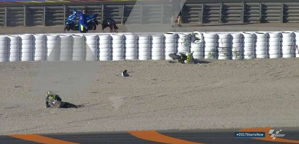 Andrea Iannone perde il controllo della Suzuki nel corso del giro di uscita dal box a poco più di un'ora dal termine della prima giornata di test. L'abruzzese è caduto in curva 10, mentre la GSX-RR è finita per rotolare nella ghiaia della via di fuga fino a impattare contro le barriere. Iannone si è rapidamente rialzato per tornare al box con uno scooter ma è apparso zoppicante. Secondo i primi riscontri medici non dovrebbero esserci particolari conseguenze (MotoGp.com)