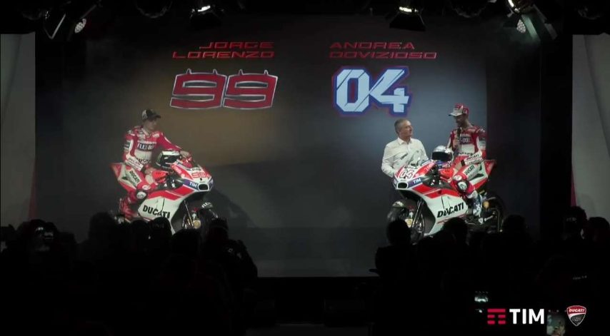 Presentate all’Auditorium di Borgo Panigale le Desmosedici con cui la nuova coppia di piloti correrà il campionato del mondo 2017. Dall’Igna: “Abbiamo preso Lorenzo per non avere scuse”