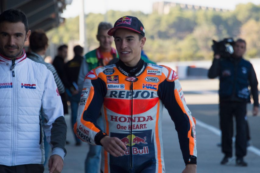 Marc Marquez rientra in pista quasi 100 giorni dopo l'operazione alla spalla. Test privato a Valencia con Ducati e Davide Tardozzi al suo fianco.