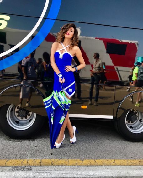 Le foto della bella modella umbra ombrellina per la MotoGP, sulle pista del mondiale MotoGP. Ha lavorato con tantissimi team, con Aprilia e Yamaha, ed è una delle umbrella girls di Valentino Rossi e Maverick Vinales.