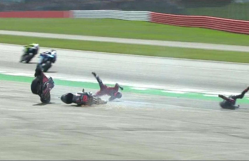 Subito dopo la partenza del Gran Premio di Gran Bretagna Dovizioso è stato vittima di un violento incidente, una brutta botta contro l’asfalto dopo aver perso il controllo della sua Ducati all’uscita della prima curva, dove a fargli letteralmente da trampolino è stata la Yamaha di Fabio Quartararo, pericolosamente scivolato nel gruppo.