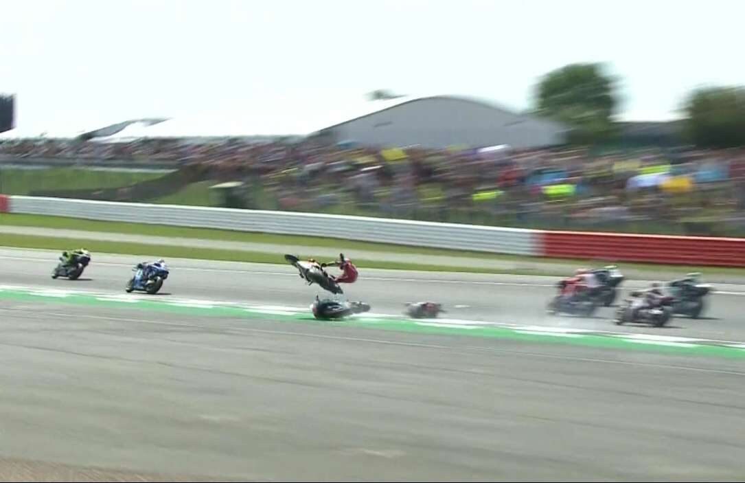 Subito dopo la partenza del Gran Premio di Gran Bretagna Dovizioso è stato vittima di un violento incidente, una brutta botta contro l’asfalto dopo aver perso il controllo della sua Ducati all’uscita della prima curva, dove a fargli letteralmente da trampolino è stata la Yamaha di Fabio Quartararo, pericolosamente scivolato nel gruppo.