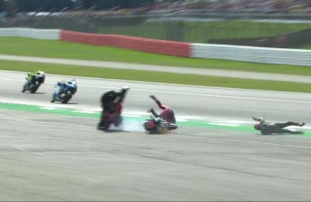Subito dopo la partenza del Gran Premio di Gran Bretagna Dovizioso è stato vittima di un violento incidente, una brutta botta contro l’asfalto dopo aver perso il controllo della sua Ducati all’uscita della prima curva, dove a fargli letteralmente da trampolino è stata la Yamaha di Fabio Quartararo, pericolosamente scivolato nel gruppo.