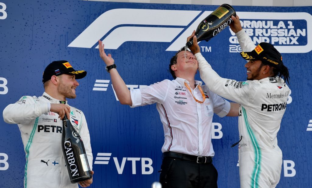 Non è bastata la pole position di Leclerc così come la manovra che aveva portato Vettel in testa dopo la prima curva della gara di Sochi regalando la doppietta, seppur solo virtuale, alla Ferrari: il GP di Russia si tinge ancora una volta dell'argento Mercedes che vince sfruttando alla perfezione il ritiro di Vettel e il seguente ingresso della safety car per fermare Hamilton al momento giusto mettendolo in testa davanti al proprio compagno Valtteri Bottas, 2° al traguardo. Terzo Leclerc, ma per il monegasco è solo una magra consolazione