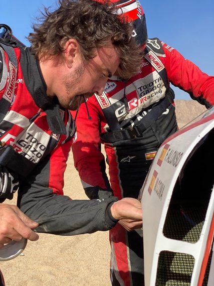 Nella seconda tappa della Dakar, la Al Waji-Neon di 393 km di cui 367 di speciale, lo spagnolo  - navigato da Marc Coma - ha sbattuto contro una roccia intorno al km 160, danneggiando pesantemente la sua Toyota Hilux. Circa due ore e mezzo per la riparazione: provvidenziali le fascette e il nastro adesivo.