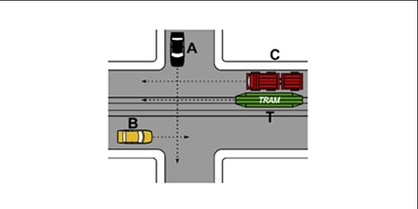 Una delle domande più insidiose ai test per la patente riguarda i veicoli su rotaie. Una delle regole da tenere bene a mente è che essi (ad esempio tram e treni) hanno la precedenza, sia che provengano da destra che da sinistra.